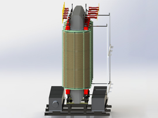 立體卷鐵心干式配電變壓器是一種結(jié)構(gòu)更合理、性能更優(yōu)良的新型高性能變壓器,鐵心三個心柱是等邊三角形立體排列,其磁路中無空氣隙,卷繞更緊密,三個磁路長度一致,且都最短,心柱的橫截面積更接近于圓形,因此性能進一步提高,損耗降低,噪聲降低,三相平衡。